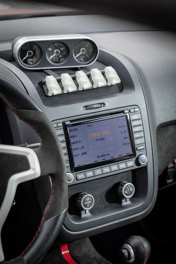 Základ kabíny je z Golfu a tak isto silueta karosérie je jednoznačne rozpoznateľná ako Golf piatej generácie. Rozšírenie karosérie o 16 centimetrov vzadu a nakoniec všetky úpravy karosérie ovplyvňujúce prúdenie vzduchu a chladenie motora pôsobia úplne prirodzene a harmonicky. Mimochodom, devätnásťpalcové kolesá majú na zadnej náprave pneumatiky so šírkou 295 milimetrov, vpredu je to 235 milimetrov.
