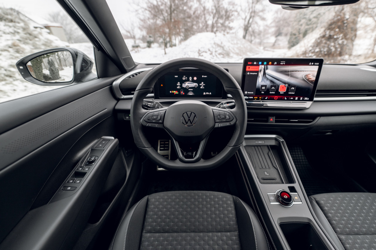 Pre náš prvý domáci test sme mali k dispozícii model R-Line s dizajnovým balíkom Black Style (590,- EUR) na príplatkových (540,- EUR s balíkom Black Style) dvadsaťpalcových kolesách Calgary s pneumatikami s netradičným rozmerom 225/40 R20. Zaujímavosťou našej konfigurácie bol štandardný športový podvozok bez príplatkových adaptívnych tlmičov (pre R-Line v cene 780,- EUR). Vďaka niektorým ďalším balíkom (navigácia za 810,- EUR, Parkovanie Pro za 140,- EUR a Technik a Assist za 960,- EUR) a prvkom príplatkovej výbavy (elektrické otváranie kufra za 350,- EUR a vynikajúce LED svetlomety IQ.Light za 470,- EUR) sa celková cena nami testovaného exempláru vyšplhala na 39.460,- EUR s DPH.
